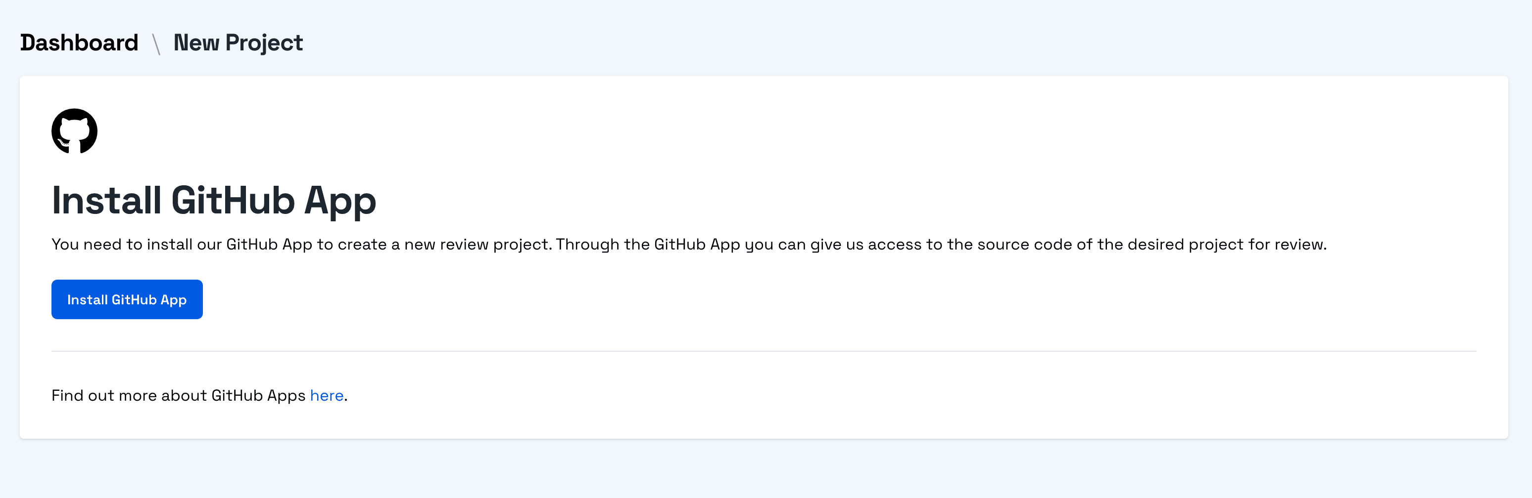 - Create a project. This will prompt you to install the RRR GitHub App the first time.
