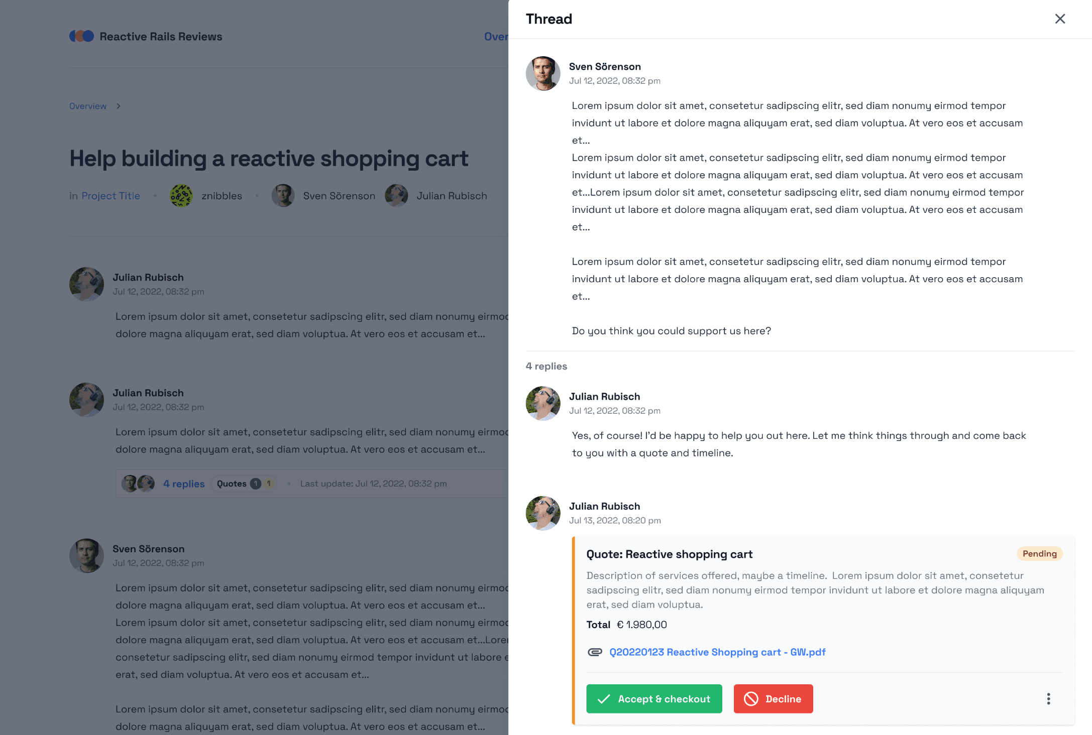 Connect with Ruby on Rails specialists for expert advice regarding Hotwire, StimulusReflex and CableReady. Arrange bespoke consultations with integrated billing and transaction history.